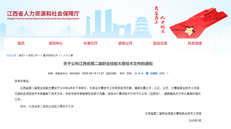為深入貫徹落實職業技能競賽體系的建設要求,進一步引導廣大青年走技能成才、技能報國之路,江西省第二屆職業技能大賽將于4月26日至30日在南昌隆重舉行。此次大賽以“技能照亮前程—技興贛鄱”為主題,是全省技能人才的一次盛會,也是對我省職業技能教育成果的一次全面檢閱。