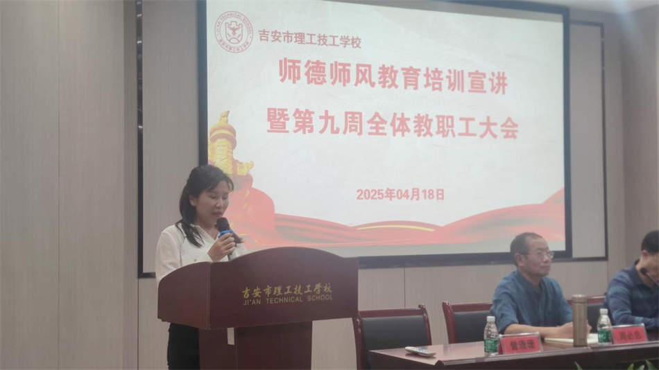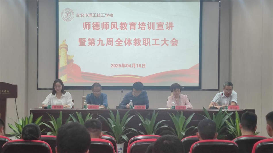 為深入貫徹落實習近平總書記關于教育的重要論述,全面提升教師隊伍思想政治素質和職業道德水平,2025年4月18日,吉安市理工技工學校召開全體教職工師德師風建設推進會,會議以“立德樹人鑄師魂,匠心筑夢強師能”為主題。