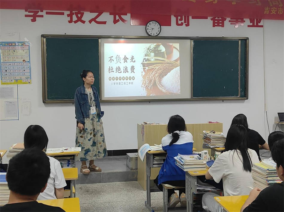 為弘揚中華民族勤儉節約的傳統美德,增強學生的節約意識,5月26日,吉安市理工技工學校學工處組織全校各班級開展了“不負食光,杜絕浪費”主題班會活動,倡導全體同學從自身做起,珍惜糧食,杜絕浪費,共建文明校園。