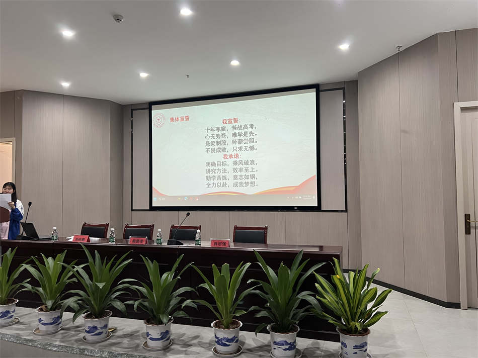 在學生表態環節,22級歐陽佳同學作為學生代表發言。她分享了自己的學習心得和備考經驗,呼吁同學們在最后的時間里珍惜每一分每一秒,全力以赴,不留遺憾。“讓我們以青春的名義宣誓,用汗水澆灌理想,用拼搏成就未來!” 她的發言慷慨激昂,引發了全場同學的共鳴,掌聲經久不息。