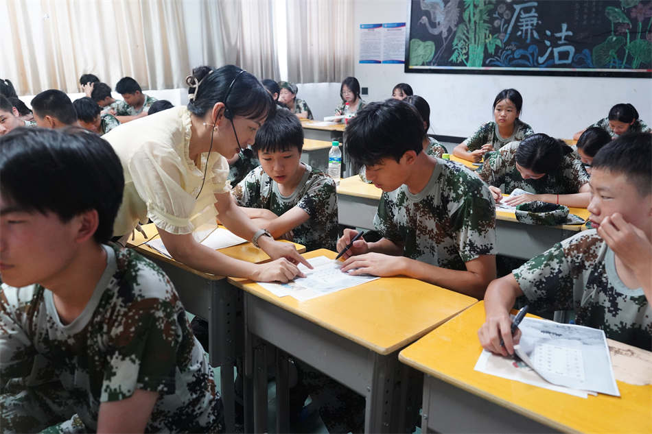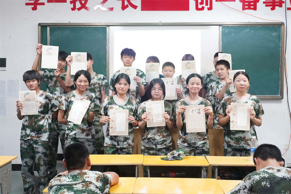 訓練場上,教官正逐個糾正學員的敬禮手勢:“手腕再平一點,目光看向前方!”課間休息時,他卻微笑著遞上礦泉水:“今天比昨天進步多了,繼續保持!”教室里,書法課的老師正俯身查看學生臨寫的硬筆楷書作業,提出建議:“注意橫畫起筆要像刀刻般利落,收尾時筆尖順勢輕提。”這種嚴慈相濟的指導,讓學員們在適應節奏的同時,也感受到成長的溫度。