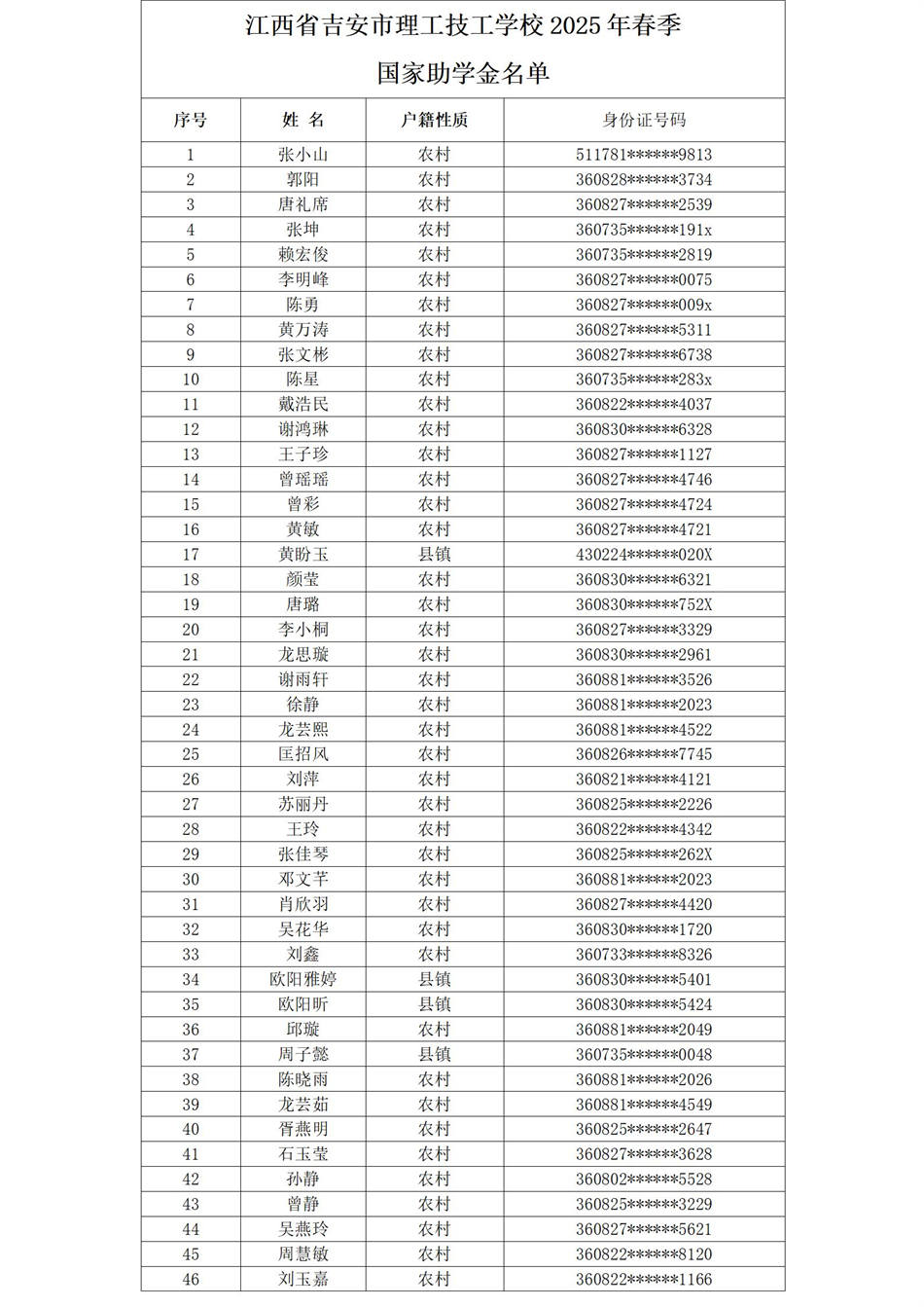 2025年春季學(xué)期我校22級助學(xué)金申報124人,23級助學(xué)金申報66人,24級助學(xué)金申報151人,具體申報名單見以下,公示日期為4月2日至4月12日。如有疑問請于公示日期內(nèi)向校紀(jì)檢監(jiān)察室或省人力資源和社會保障廳職業(yè)能力建設(shè)處反映。
