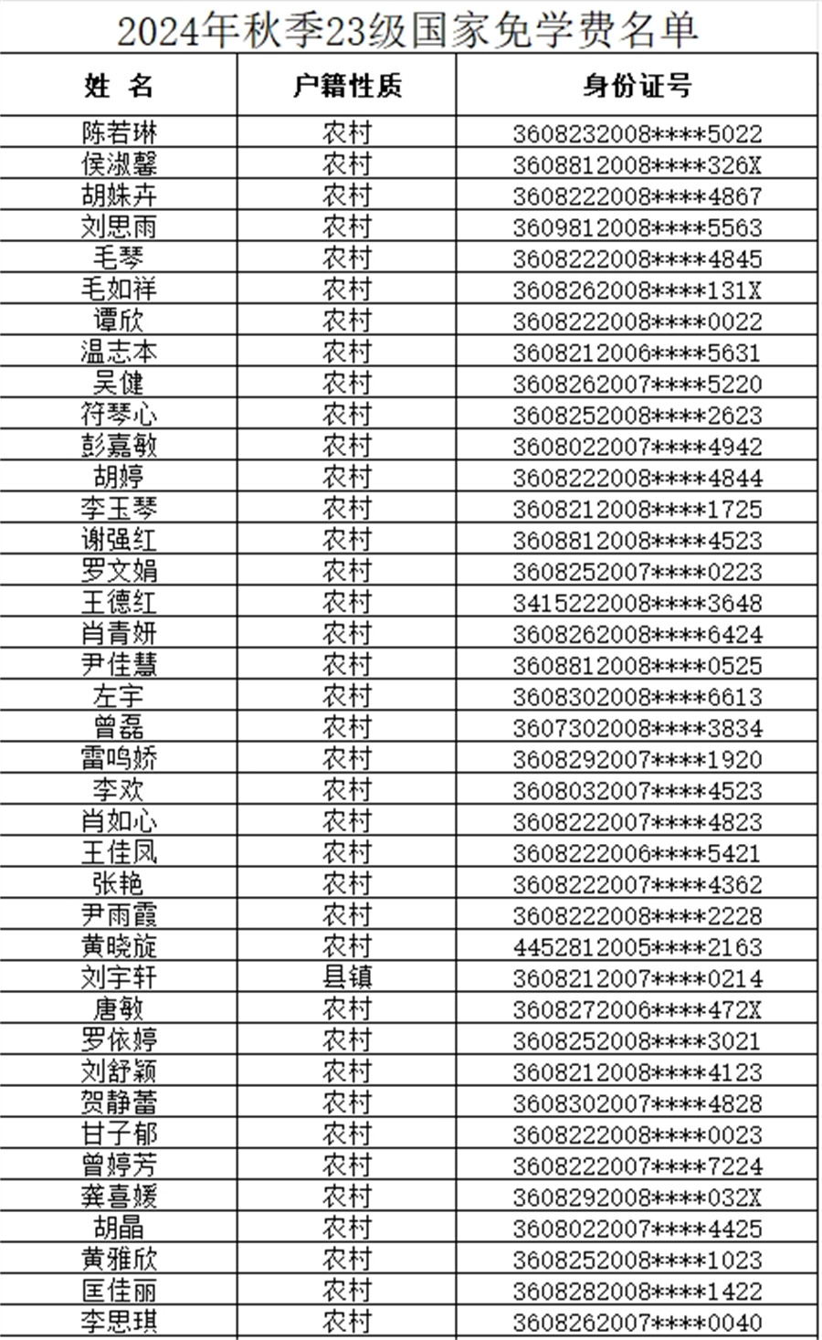 吉安市理工技工學(xué)校2024-2025學(xué)年上學(xué)期免學(xué)費(fèi)名單已公布,如有疑問請于公示日期內(nèi)向校資助中心反映。